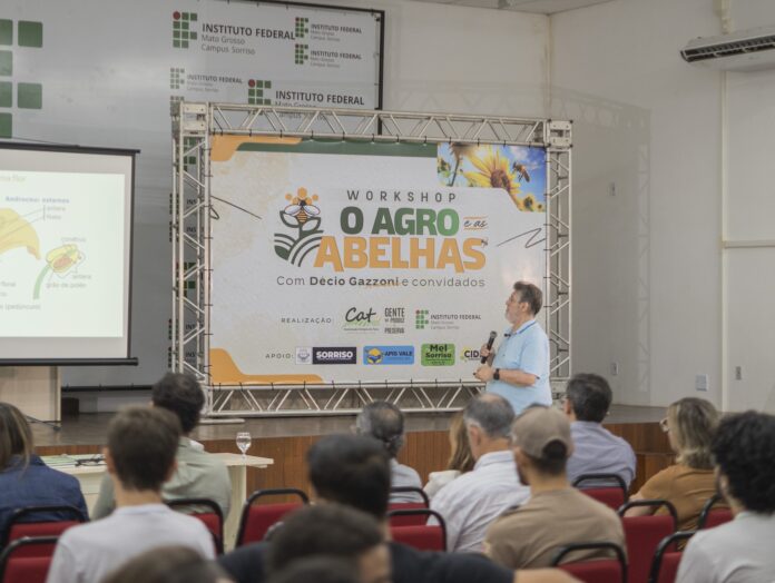 Responsáveis por 3,6 milhões de hectares cultivados com soja na última safra, os municípios do médio-norte de Mato Grosso — entre eles Sorriso, Lucas do Rio Verde e Nova Mutum — também despontam como uma nova fronteira para o desenvolvimento rural sustentável e diversificado. Pesquisas apontam que a integração entre lavouras de soja e criação de abelhas pode elevar, em geral, 15% a produtividade das lavouras, sem a necessidade de aumento nos custos de produção. Os dados foram apresentados durante o workshop “O Agro e as Abelhas”, realizado no dia 8 de maio, no campus do Instituto Federal de Mato Grosso (IFMT), em Sorriso. A iniciativa foi promovida pelo IFMT e o Clube Amigos da Terra (CAT Sorriso).