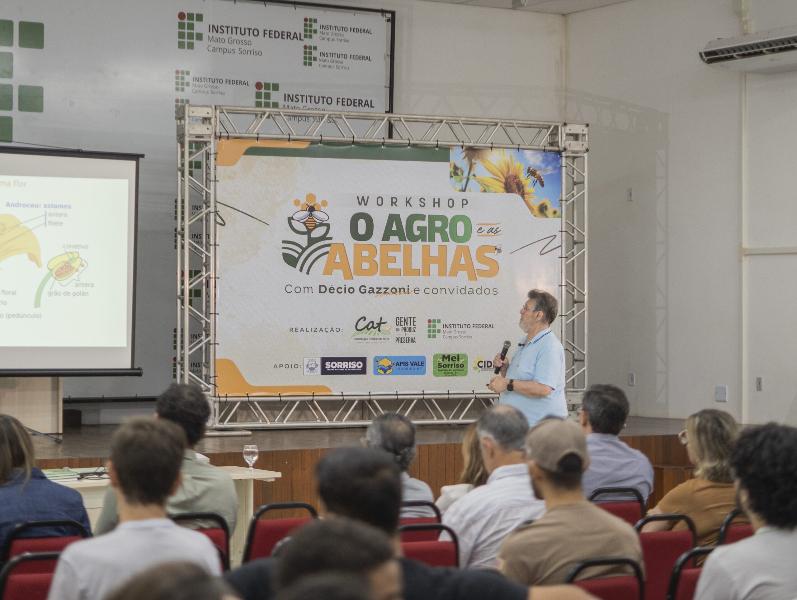 O workshop “O Agro e as Abelhas” foi realizado pelo IFMT e CAT Sorriso, dentro do projeto Cultivando Vida Sustentável — uma parceria da associação com a organização IDH e a empresa Cargill.