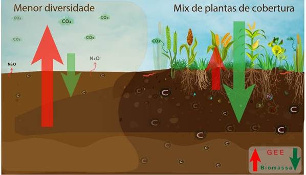 Na lista de nome das plantas de cobertura estudadas, aparecem alguns conhecidos do sojicultor, como a crotalária (Crotalaria spectabilis), leguminosa de ciclo anual; braquiária ruziziensis (Urochloa ruziziensis), gramínea com grande produção de biomassa de parte aérea e raízes; o milheto (Pennisetum glaucum), gramínea de crescimento rápido; e o feijão guandu (Cajanus cajan), uma espécie de leguminosa. Em todos os casos – e alguns experimentos foram feitos misturando algumas espécies como também ocorre normalmente no campo – buscou-se, por meio de métodos científicos de medição bem consolidados, quantificar a biomassa, a produção, a distribuição de carbono no solo e as emissões de gases de efeito estufa no longo prazo.