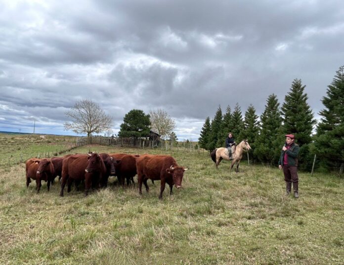 Foi um grande sucesso o dia de campo realizado em duas propriedades de São Francisco de Paula (RS), região dos Campos de Cima da Serra, que reuniu 120 criadores de Devon de diferentes regiões do Rio Grande do Sul e de Santa Catarina, no sábado, 24 de maio. A primeira parada foi na Fazenda Cabo Verde, de André Pereira e família, onde após uma breve apresentação do projeto de criação os visitantes passaram para as mangueiras e viram, de perto, alguns lotes selecionados. O trabalho de cruzas com Devon iniciou em 2019 e, em 2022, André Pereira fez a opção total pela raça Devon, com o objetivo, de fornecer ao mercado matrizes definidas para difundir a raça.