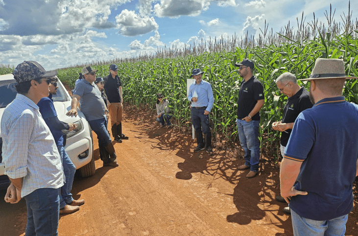 Já em Campo Novo do Parecis, o foco foi no uso do Bomafit na cultura do milho, com aplicação na fase V8. A visita foi feita nas áreas do produtor Toninho Brolio, da fazenda Vô Armando. O gerente de Desenvolvimento de Mercado da Elicit Plant Brasil, Karol Czelusniak explicou que foram vistas plantas extremamente sadias, com maior índice de área foliar e uma diferença visível no desenvolvimento. “A expectativa aqui é de ganhos de até 12 sacas por hectare com o uso do nosso produto”, destacou.