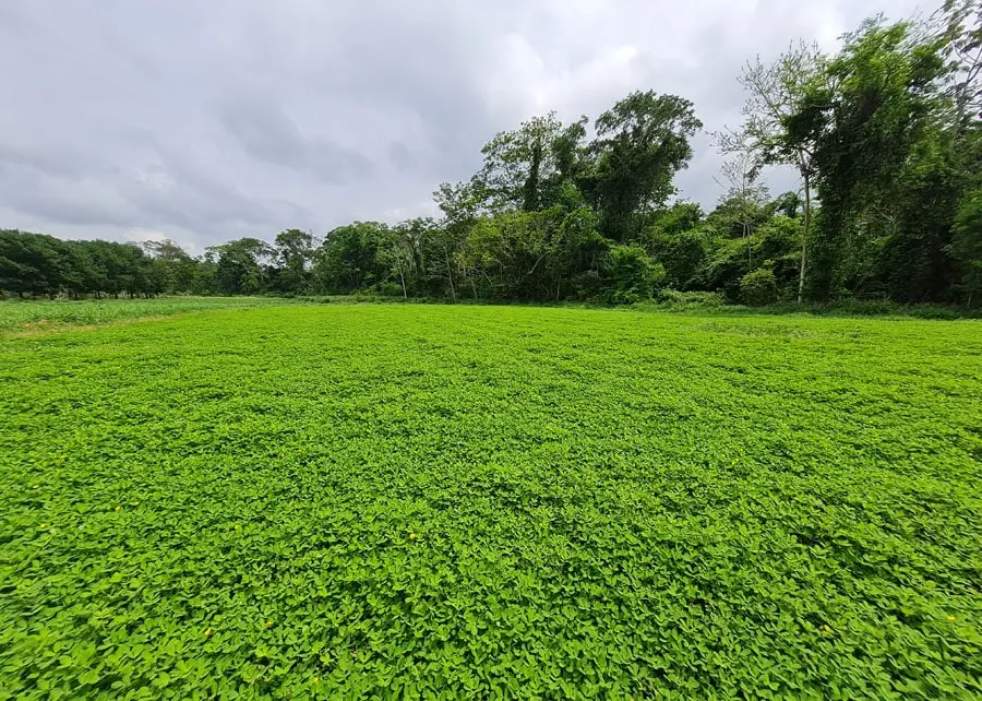 A cultivar BRS Oquira também é capaz de realizar a fixação biológica de nitrogênio nas pastagens, processo que melhora a fertilidade do solo e contribui para o desenvolvimento das plantas. De acordo com o pesquisador da Embrapa Acre Maykel Sales, por meio da associação com bactérias que vivem no solo e se alojam nas suas raízes, a leguminosa captura nitrogênio do ar e o disponibiliza para as plantas.