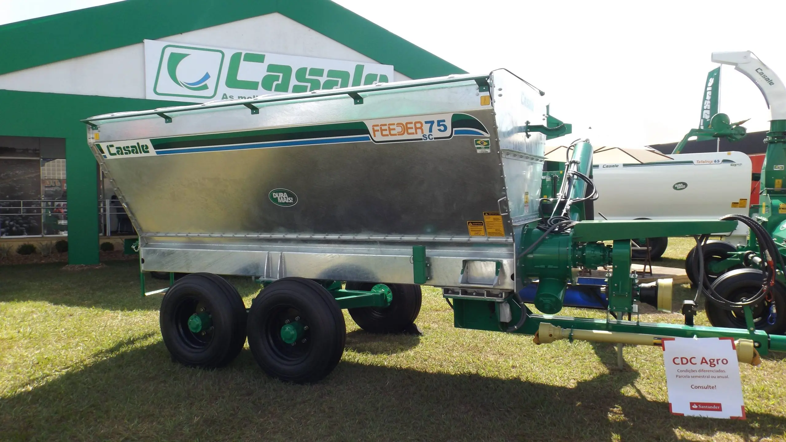 Segundo Celso Casale, diretor-presidente da empresa, o distribuidor conta com caçamba em aço galvanizada a fogo, o que garante maior durabilidade, além disso, contém ainda um completo sistema de gestão para o trato animal com capacidade de distribuição de 2 m³ até 20 m³. OFeeder SC garante ao criador atender as necessidades nutricionais dos animais com grande eficiência. É um equipamento resistente com a qualidade Casale que todo mundo já conhece”, diz.